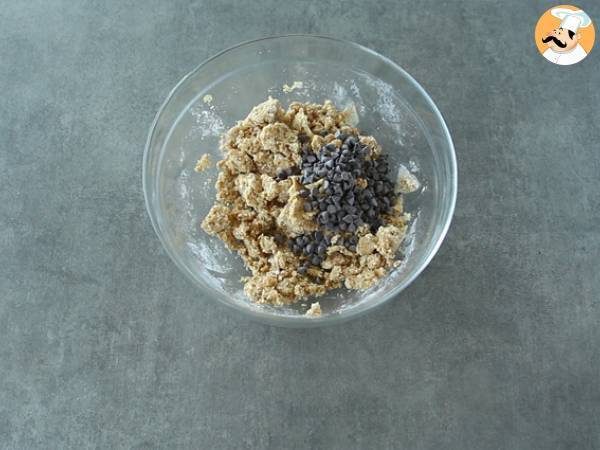 Ajouter les pépites de chocolat et mélanger avec les mains.