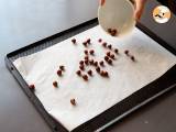Disposer les noisettes sur une plaque de cuisson recouverte de papier sulfurisé et les torréfier dans un four préchauffé à 200°C pendant 10 minutes.