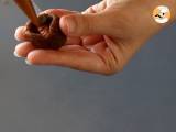 Former les boule puis creuser l'intérieur pour les garnir de purée de cacahuète. Refermer les boules et mettre au frais pendant 30 minutes.