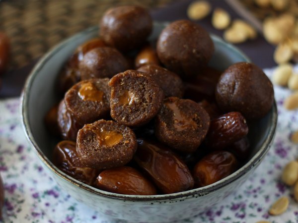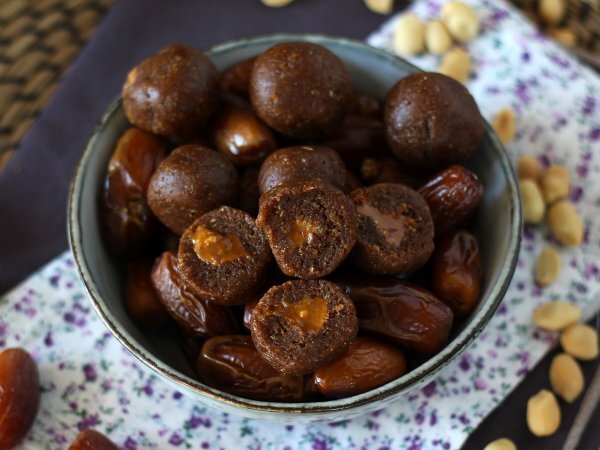 Energy balls aux dattes avec un cœur coulant au beurre de cacahuète