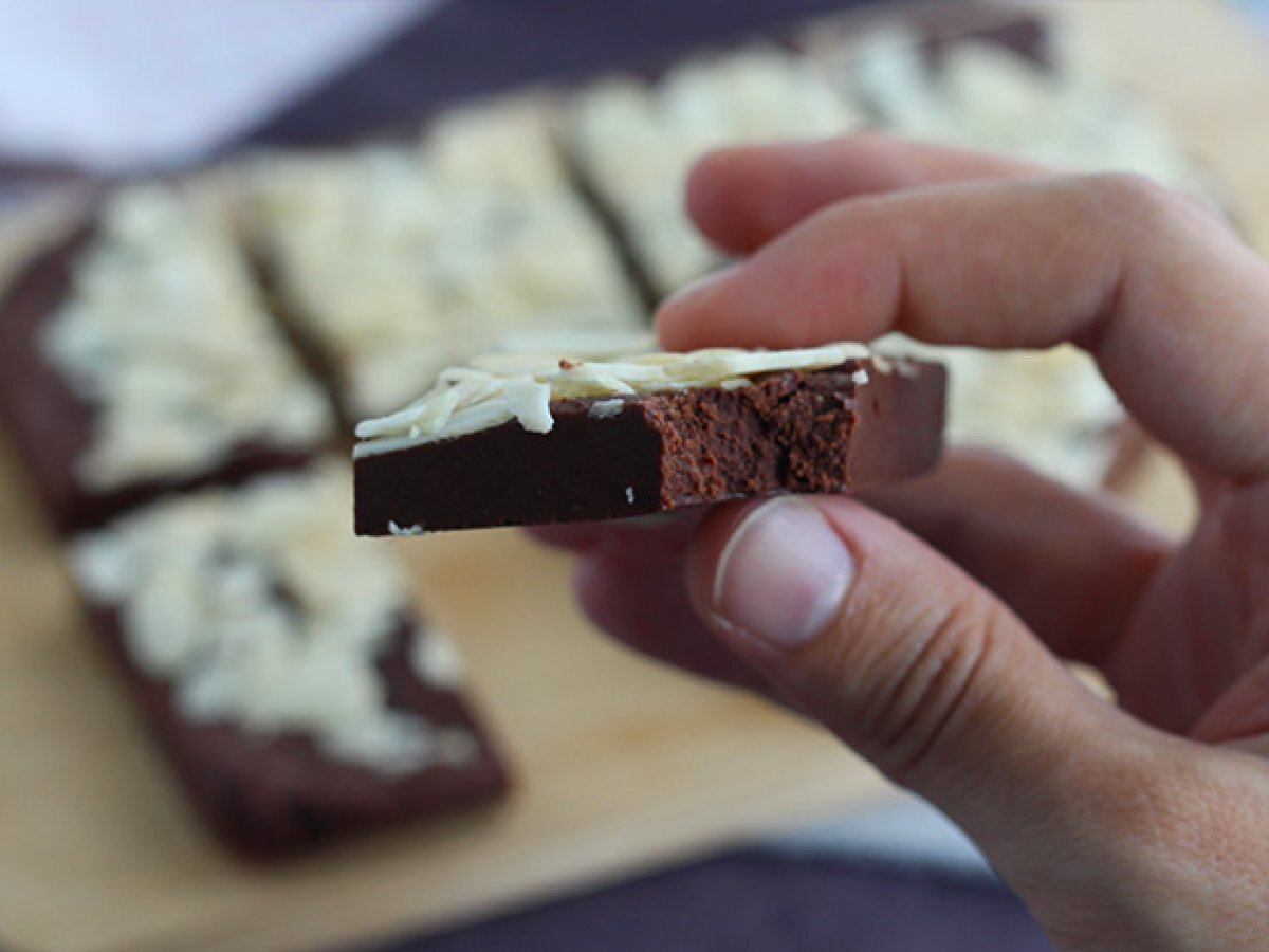 Des petits carrés au chocolat pour accompagner votre dessert ou pause-goûter, ça vous tente ? En plus, cette version de "fudge" et garantie vegan et sans gluten : aucune raison de se priver donc ! Réalisée avec seulement 4 ingrédients, réalisez cette recette hyper facile et garantie sans four ;-) Pas à pas, suivez les étapes de réalisation de ce fudge grâce à nos explications écrites, photos mais aussi vidéo. À vous de jouer !