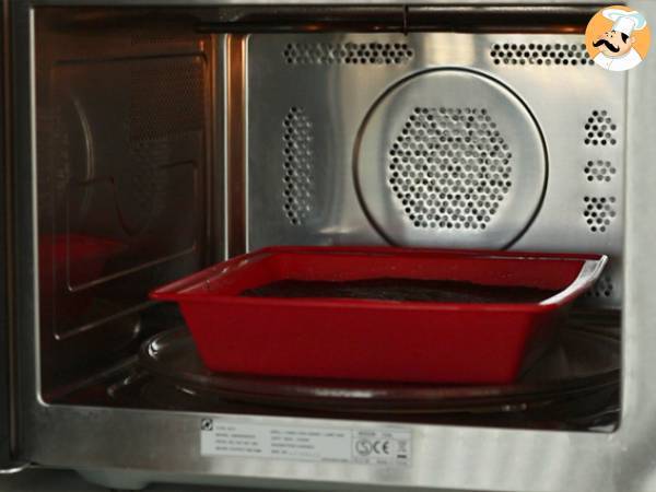 Verser la pâte dans un moule (adapté à la cuisson au micro-ondes. Ici le nôtre est en silicone) préalablement beurré. Faire cuire 5 minutes et 30 secondes à 800W.