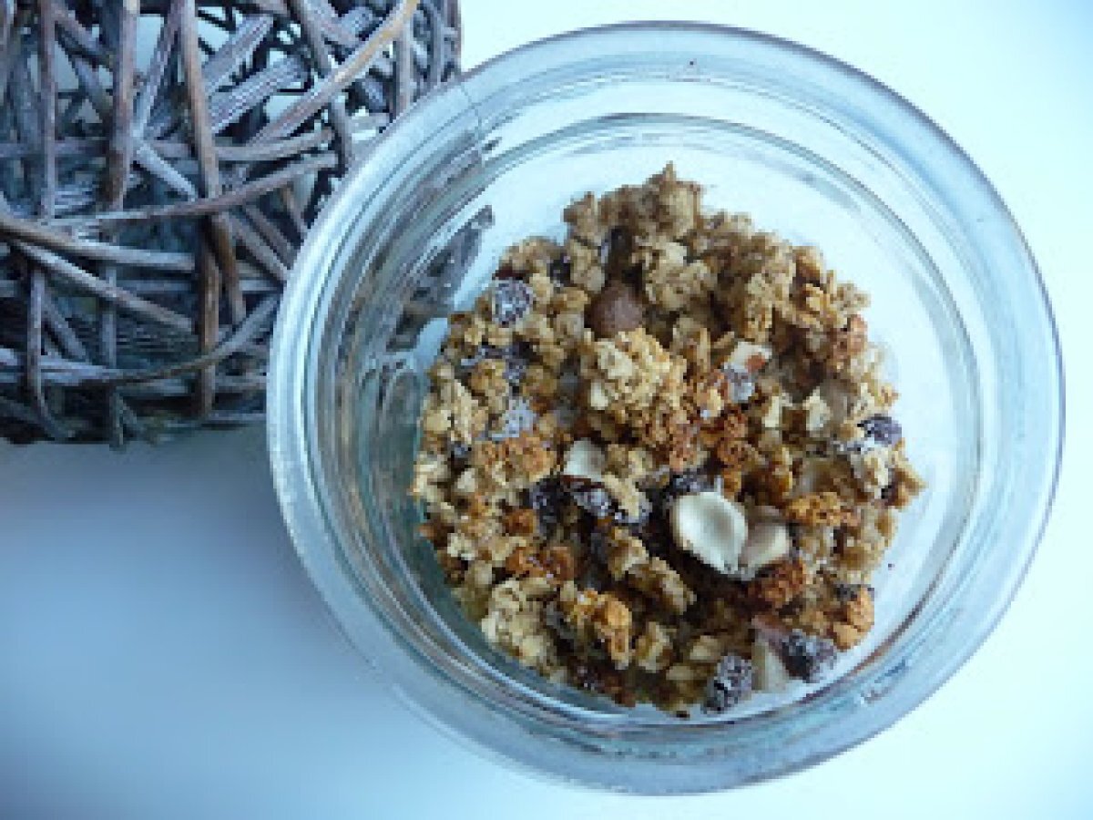 Granola maison : avoine, chocolat, noisettes, coco. Goûterfacile40 min1021 Kcal Envoyer cette recette à un ami Imprimer cette page Poser une question à l'auteur Publier votre photo de cette recette Ingrédients 1 125 g de flocons d'avoine 100 ml de jus de pommes 1 cuillère à soupe d'huile de tournesol 25 g de noisettes 25 g de pépites de chocolat 20 g de noix de coco râpée Coût estimé: 1.78Euros€ (1.78€/part)