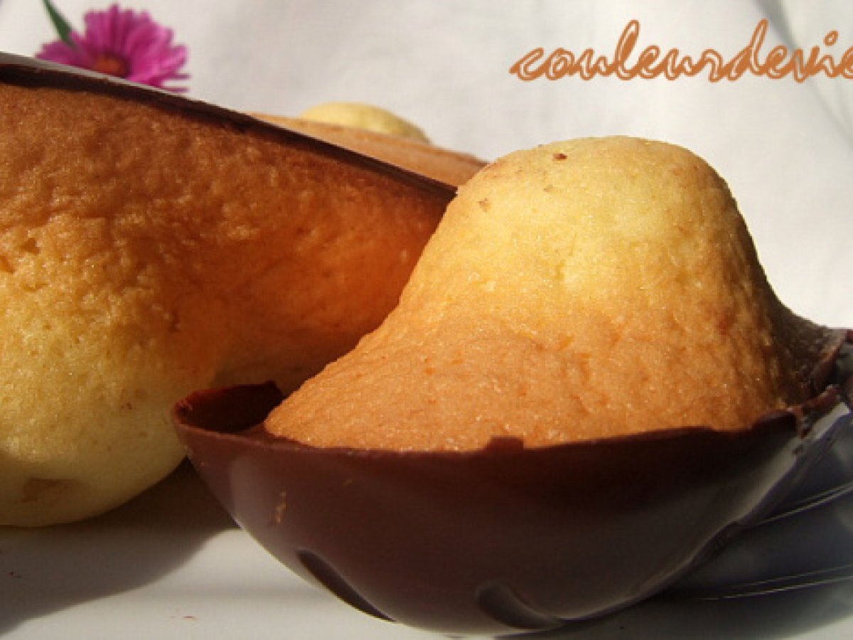 Madeleines à l'orange en coque de chocolat PrécédentSuivant Goûterfacile27 min Envoyer cette recette à un ami Imprimer cette page Poser une question à l'auteur Publier votre photo de cette recette Ingrédients 6 Pour 16 belles madeleines 3 oeufs entiers 100 g de sucre en poudre 110 g de farine 1 cuillère à café d’extrait naturel d’orange 1 cuillère à café de levure chimique sel 90 g de beurre Pour les coques : 170 g de chocolat noir à pâtisser environ