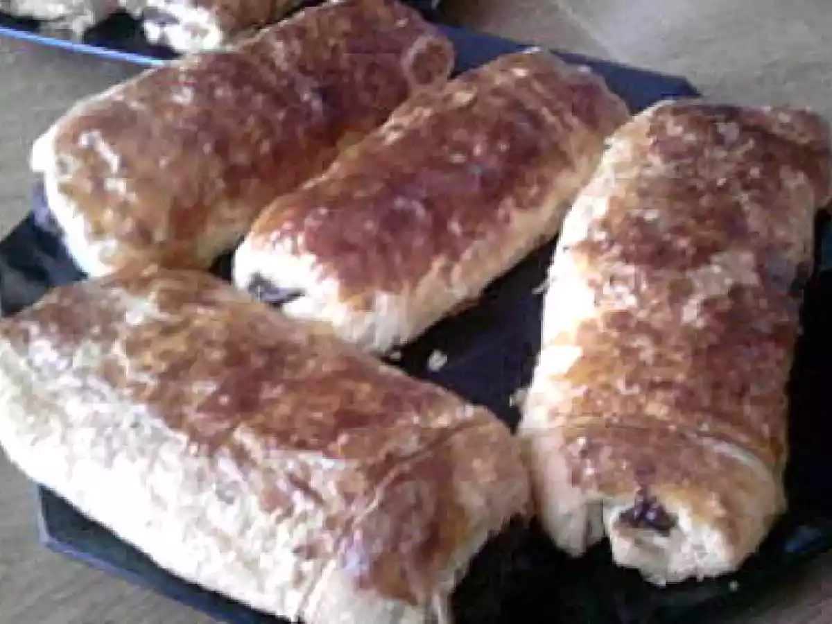 découpez votre pate en rectangles égaux.posez votre chocolat au bout de la pate et roulez le sur lui-meme. posez le sur une plaque allant au four avec du papier sulfurisé. confectionnez vos autres pains au chocolat.au pinceau ,dorez les pains avec 1 oeuf battu.