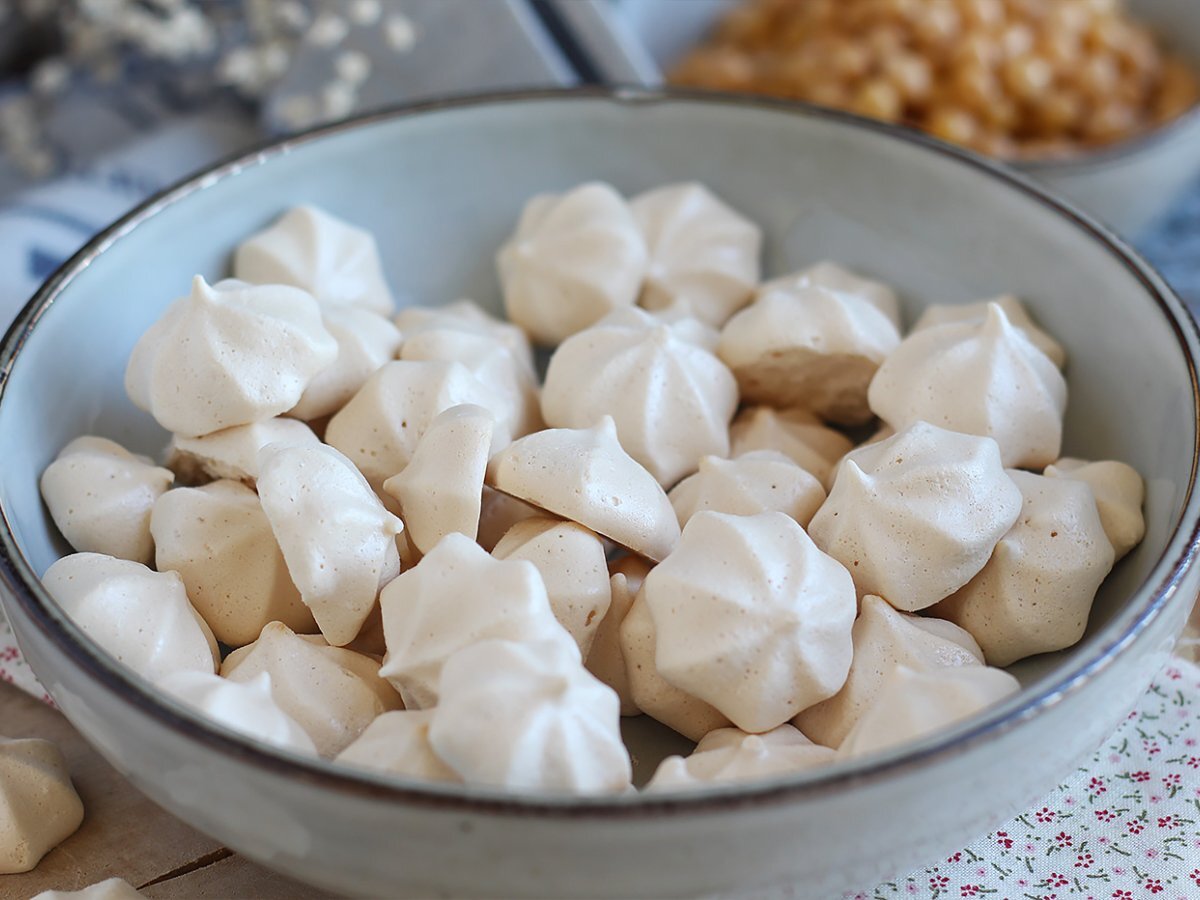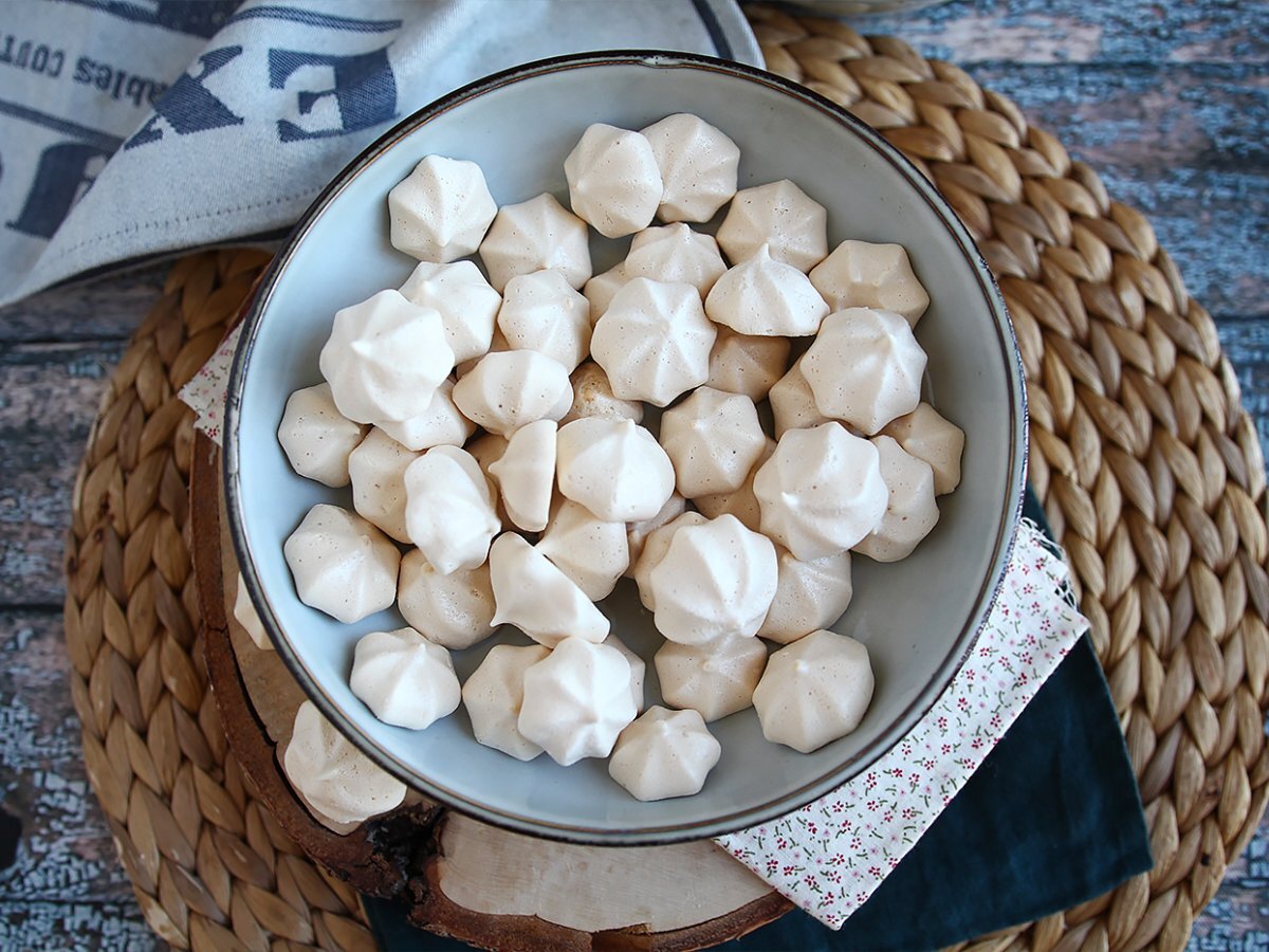 Pocher les meringues sur une plaque de cuisson recouverte de papier sulfurisé. Mettre le tout au four préchauffé à 120°C pendant 1h30.