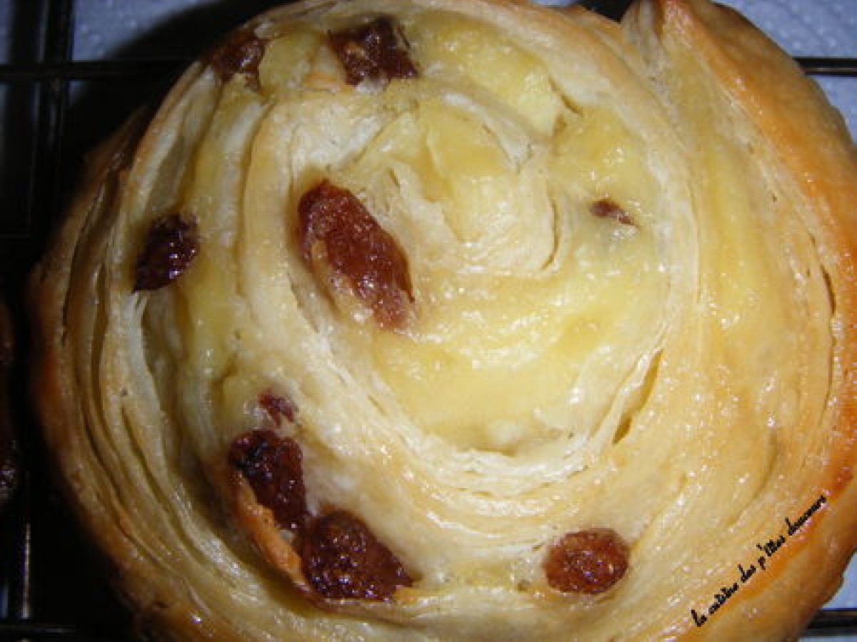 Pains aux raisins PrécédentSuivant Goûterfacile2 h 15 m Envoyer cette recette à un ami Imprimer cette page Poser une question à l'auteur Publier votre photo de cette recette Ingrédients 6 Pour 12 et 15 pains aux raisins : Pour la pâte briochée feuilletée : 375 g de farine type 45 25 g de sucre en poudre 2 cuillères à café de sel 15 g de poudre de lait 1 sachet de levure de boulanger déshydratée ou 25 g de levure fraîche 1 oeuf entier 115 g d'eau 40 g de beurre ramolli 250 de beurre pour tourner Pour la garniture : 200 g de crème pâtissière ( faite maison ou préparation alsa ) 100 g de raisins secs Pour la dorure et la finition : 50 g de sucre en poudre 5 cl d'eau 1 cuillère à soupe d'eau de fleur d'oranger 1 oeuf + un jaune