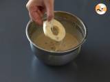 Tremper généreusement les tranches de pommes dans la préparation à pancakes.