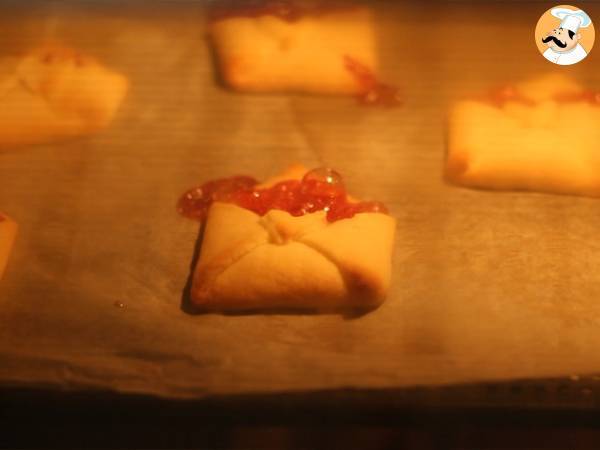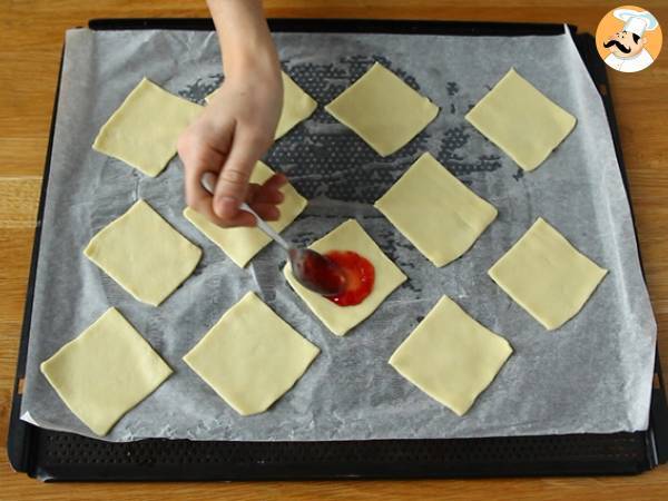 Sur une plaque de cuisson recouverte de papier sulfurisé, disposer les carrés de pâte sous la forme de losange ♦