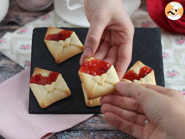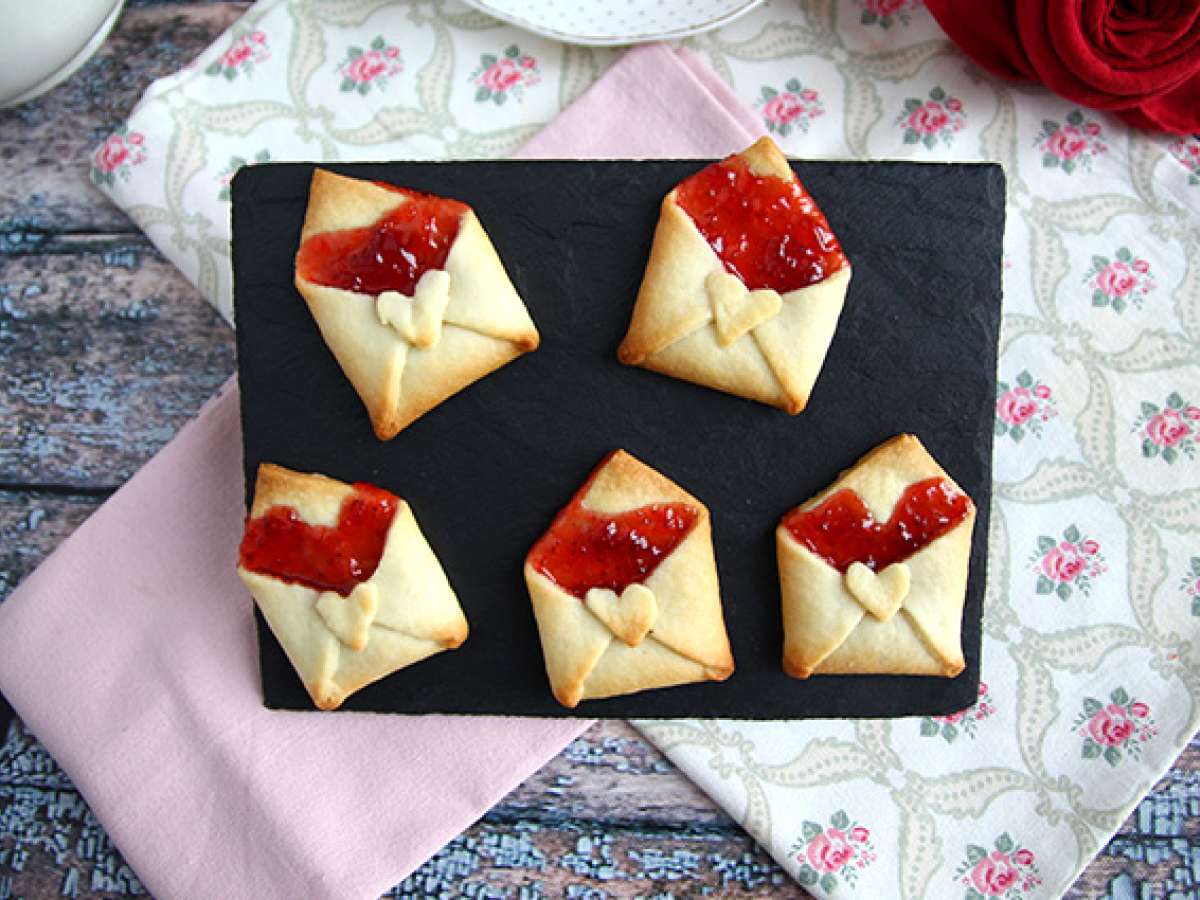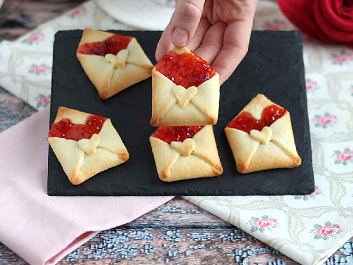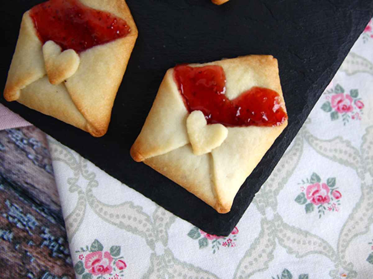 Et si vous écriviez une belle lettre d'amour à votre moitié pour la Saint-Valentin ? Pas inspiré ? Bon on garde l'idée de la lettre alors, mais elle sera comestible ! Cette dernière se transforme en confiture qui se glissera dans des sablés en forme d'enveloppe, scellés avec un joli coeur. Pas mal n'est-ce pas ?! Plus facile à faire qu'une lettre à écrire et un bel effet garanti ;-) En plus, vous n'aurez besoin que de 2 ingrédients ! Incroyable ;-) Suivez pas à pas les étapes de réalisation de ces gourmandises ainsi que le pliage qui vous permettra d'obtenir ce joli résultat.