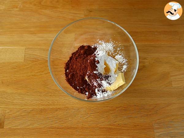 Mélangez le beurre mou avec le sucre glace et le cacao en poudre.