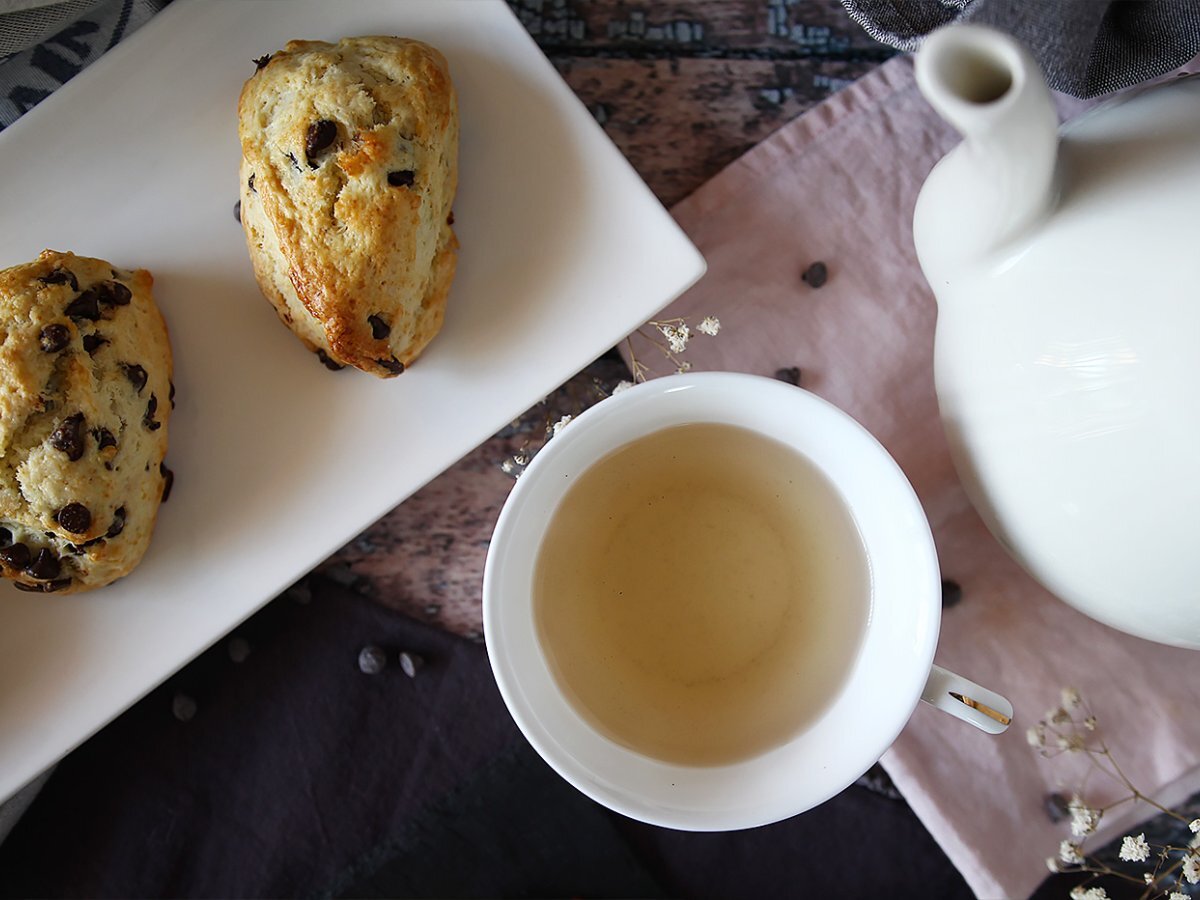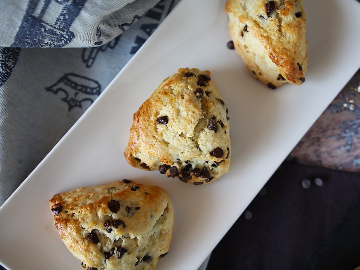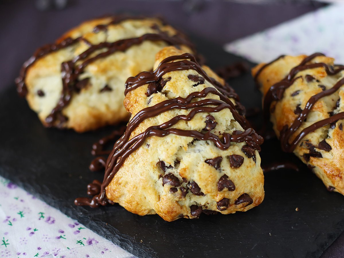 Et voilà, vos scones aux pépites de chocolat sont prêts ! Vous pouvez les napper de chocolat fondu pour plus de gourmandise.