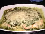 Ingrédients: 1 portion de saumon, 100g d'épinards surgelés, 2 cuillères à soupe rase de riz, 50 g de sauce tomate, 1 cuillère à soupe de crème fraîche, un peu...