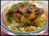 Ingrédients: 4 poireaux 3 c. à soupe d'huile d'olive 3 tranches de jambon blanc 5 tranchettes de fromage (Edam pour nous) 150 gr de fromage râpé sel poivre