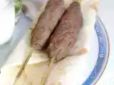 Ingrédients: pour 20 brochettes environ : 500 g de viande hachée de mouton (ici un mélange de viande hachée de boeuf (200 g) et de mouton (300 g), pour que ce...
