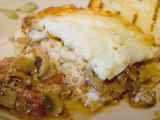 Ingrédients: 400 g de poulet (cuit, restes de poulet plutôt que des escalopes) 300 g de champignons de paris 100 g de fromage râpé (comté ou emmental + 1 peu...