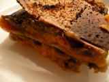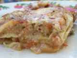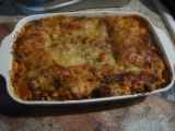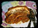Ingrédients: 250 g de viande hachée 1 oignon jaune 1 pot de Riste d'aubergine de pâte à lasagne 2 petits verres de lait un peu de crème liquide (environ 1...