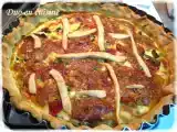 Ingrédients: une pâte brisée 3 oignons moyens 1 petite courgette 2 petites carottes 1 cuillère à café d'huile d'olive 250 ml de lait 1 oeuf 100 g de lardons...