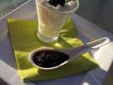 Ingrédients: 20 ml de jus de Sudashi 1 cuillère à café de pandan 1 fruit de la passion 300 g fromage blanc 3 blancs d'oeufs 2 feuilles de gélatine -40 g de sucre