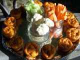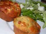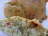 Ingrédients: 1 oeuf 120 g de farine 1/2 sachet de levure 1-2 cuillère à soupe d'huile 1 yaourt nature 70 g de poulet cuit 3-4 tomates cerises 65 g de poivron...