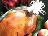 Ingrédients: 1 dinde de 6 à 8 kg (avec les abats coupés en petit dés pour faire la farce) 2 citrons verts, poivre blanc, sel et huile d'olive. 100 g de beurre...