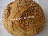 Ingrédients: 250 g de farine T80 250 g de farine d'épeautre 21 g de levain bio de blé 10 g de sel 320 ml d'eau tiède