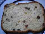 Ingrédients: 210 ml lait -2 jaunes d’oeufs -60 g beurre fondu -55 g sucre -1 cuillère à café sel -400 g farine -1 sachet levure spécial pain -80 g raisins secs