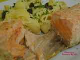 Ingrédients: 4 pavés de saumon 1 cuillère à soupe d'huile de noisette Mélange gingembre/agrumes de Ducros Sel Poivre 240 g de pâtes 50 g de rondelles d?olives...