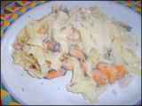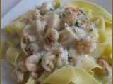 Ingrédients: Tagliatelles aux fruits de mer: Pâtes 4 oeufs 2 c. à table d'huile d'olive 1 c. à thé de sel 2 1/2 tasses de farine Sauce: Gros pétoncles Grosses...