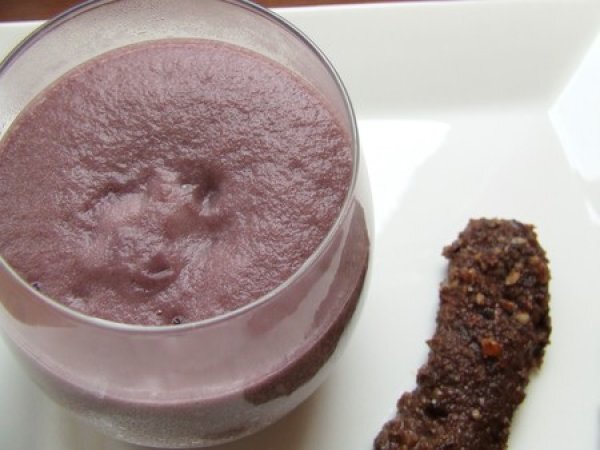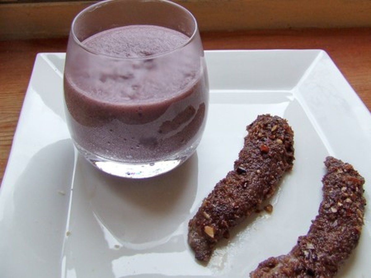 Aiguillettes de canard aux noisettes & cacao, espuma de vitelotte au vin rouge