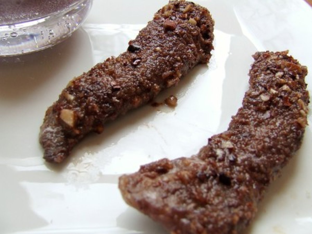 La viande de canard, à la fois douce et sauvage. L'ajout de noisettes et de grué de cacao apportent du croustillant à l'ensemble un peu trop tendre.