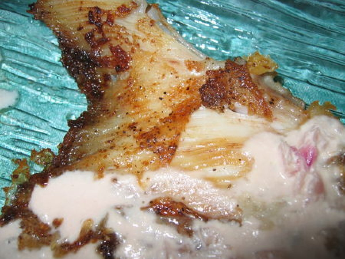 Aile de raie et sa sauce à l'échalote votez maintenant PrécédentSuivant Platfacile40 min815 Kcal Envoyer cette recette à un ami Imprimer cette page Poser une question à l'auteur Publier votre photo de cette recette Ingrédients 2 2 ailes de raie 1 brique de crème fraîche liquide 2 grosses échalotes 120 ml de vinaigre de vin (je conseillerais un peu moins de vinaigre) margarine sel, poivre