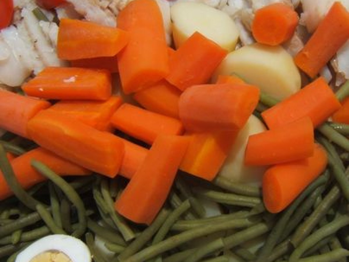 - Dans le même temps cuisez les pommes de terre, haricots verts et carottes dans un cuit vapeur.