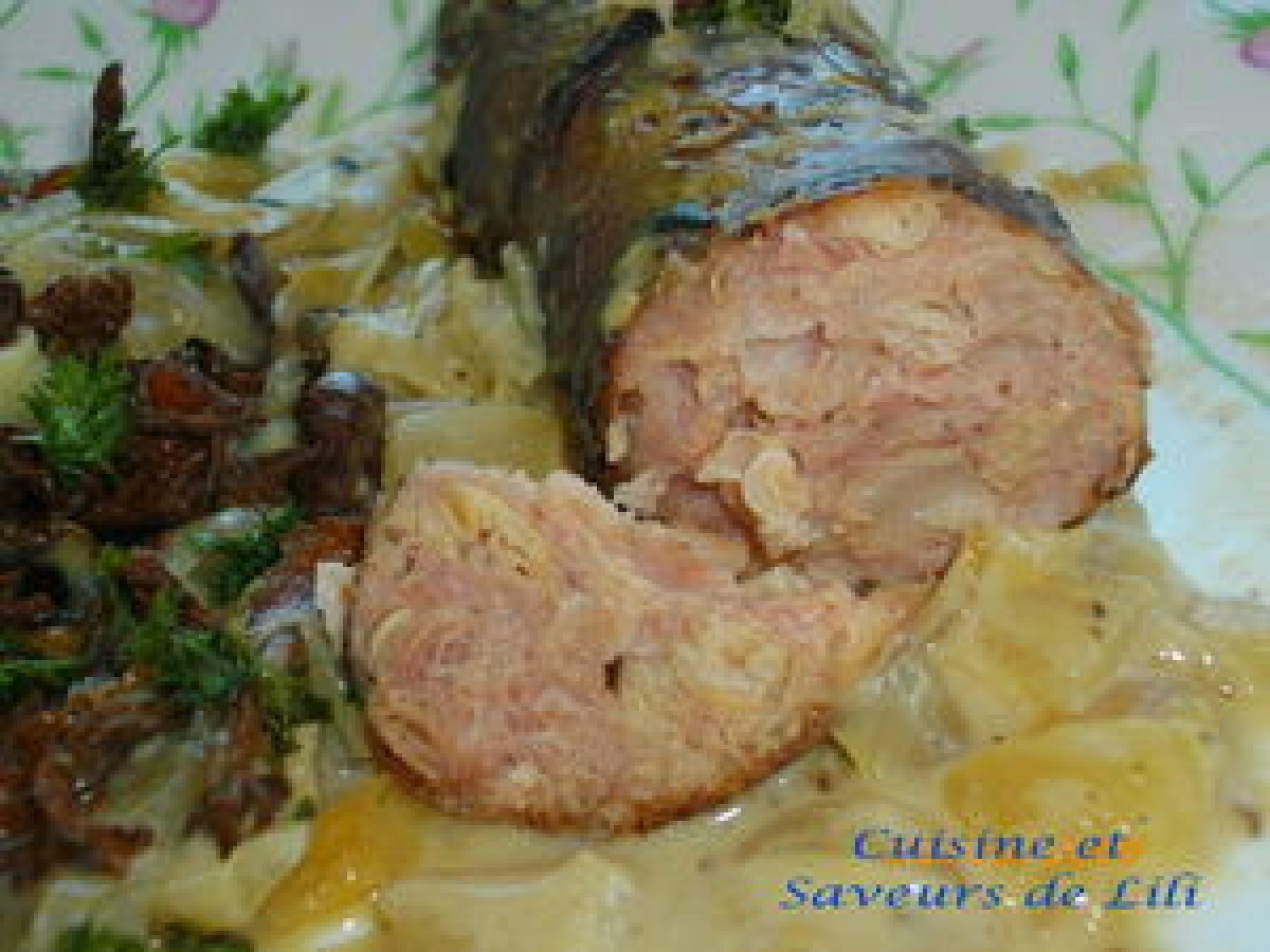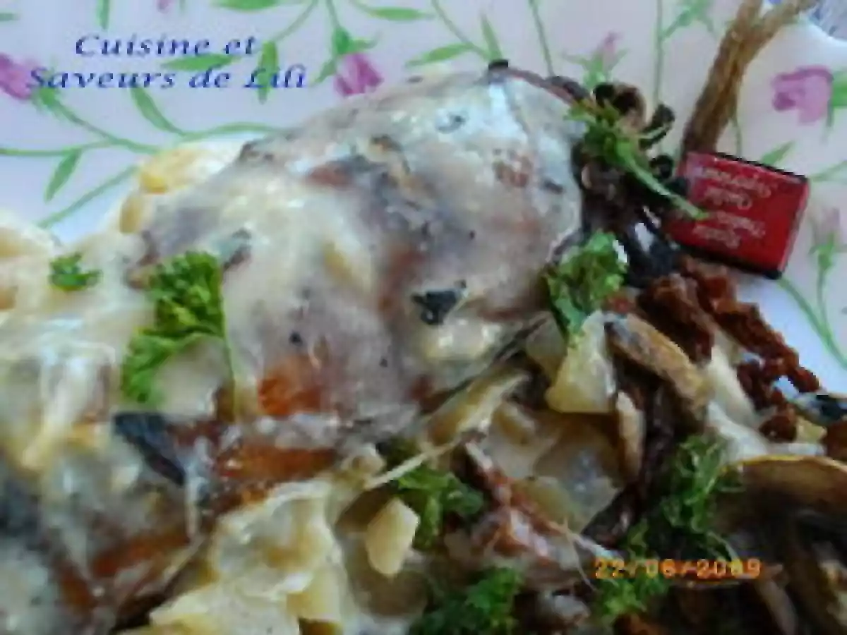 - Retirer les andouillettes, déglacer le plat de cuisson avec la crème fraîche. Verser dans une casserole et réduire légèrement, y ajouter les champignons préalablement cuits.