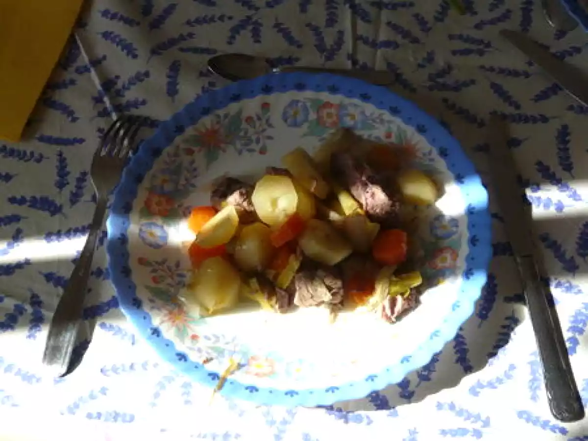 Les réfrigérer 24 heures dans un grand plat avec les ingrédients de la marinade. - Éplucher les pommes de terre et les carottes, les couper un très fines rondelles.