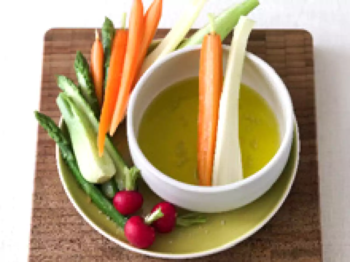 utilisez ceux que vous avez sous la main, du moment que ces légumes soient frais. du chou-fleur, des carottes, radis, fenouil, cœurs d'artichauts, céleri, asperges, ... - Faites chauffer l'huile sans la faire bouillir. Rajoutez l'ail et les anchois et mixez ce mélange.