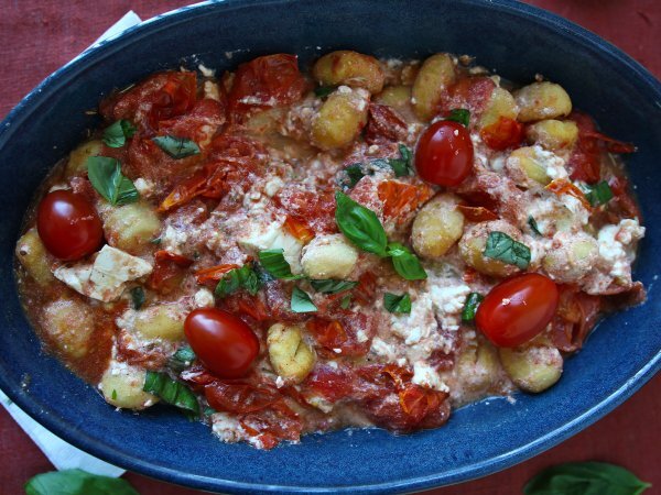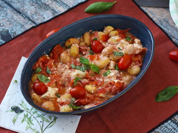 Baked feta gnocchi au airfryer, le plat hyper rapide à préparer aux tomates cerise et feta!