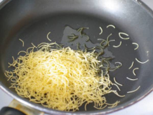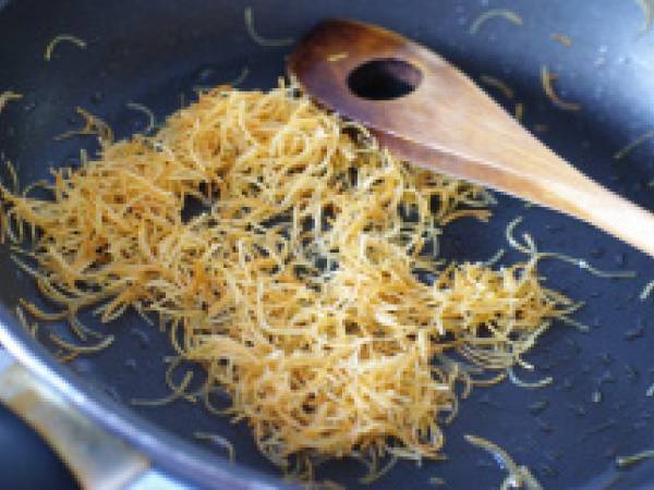 Dans une poêle, faire revenir les vermicelles dans du beurre jusqu'à ce qu’ils prennent une couleur dorée.