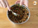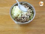 Ajoutez la viande aux légumes, ajoutez du poivre et de la ciboulette hachée, et mélangez bien. Réservez.