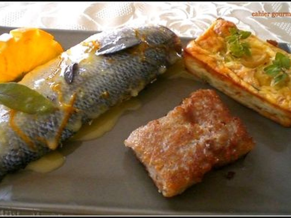 Pour changer du traditionnel beurre blanc,opter pour un beurre à l'orange, un gratin de poireau lui aussi au parfum d'orange ainsi qu'un délicieux farz noir croustillant à l'extérieur et fondant à l'intérieur.Bon appétit!