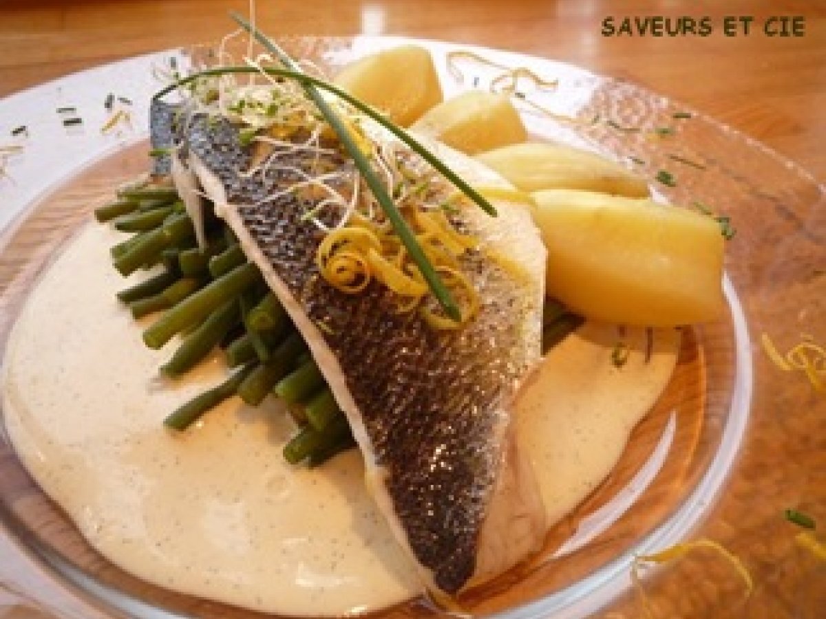 Bar et haricots verts a la vapeur, sauce cremee a la vanille Platfacile35 min449 Kcal Envoyer cette recette à un ami Imprimer cette page Poser une question à l'auteur Publier votre photo de cette recette Ingrédients 4 2 cuillerées à soupe d’huile d’olive extra-vierge 4 filets de bar avec peau Sel de mer et poivre noir fraîchement moulu 1 gousse d’ail pelée 250 g de haricots verts 1 verre de vin blanc 15 cl de crème fraîche épaisse 1 verre de vin blanc Coût estimé: 6.47Euros€ (1.62€/part)