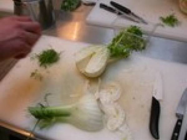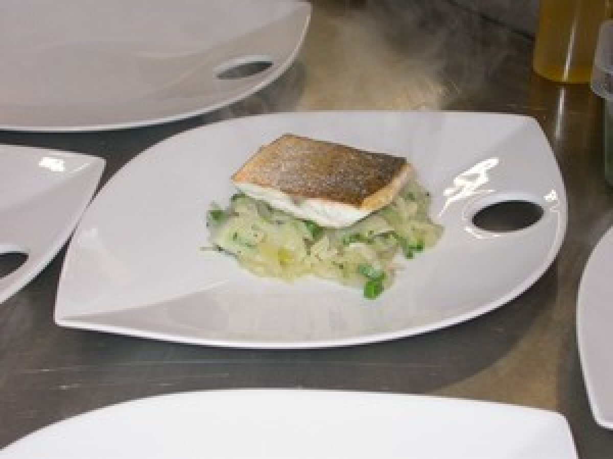 Bar rôti au fenouil et oignons nouveaux de l'atelier des chefs