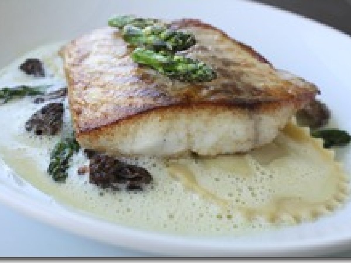 Bar sur raviolis shiitake et emulsion aux morilles Platfacile1 h 20 m Envoyer cette recette à un ami Imprimer cette page Poser une question à l'auteur Publier votre photo de cette recette Ingrédients 4 Un ½ oignon 200 g de champignon shiitake 10 cl de vin blanc 10 à 12 feuilles de pâte à lasagne fraîche 20 g de morille sèche 30 cl de bouillon de volaille 15 cl de crème 40 g de beurre 200 d'asperge verte 4 pavés de bar sans la peau huile d'olive beurre sel poivre noix de muscade