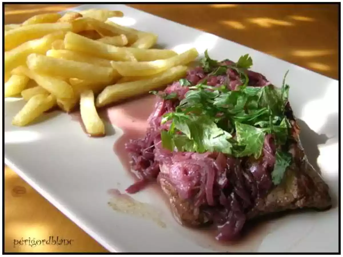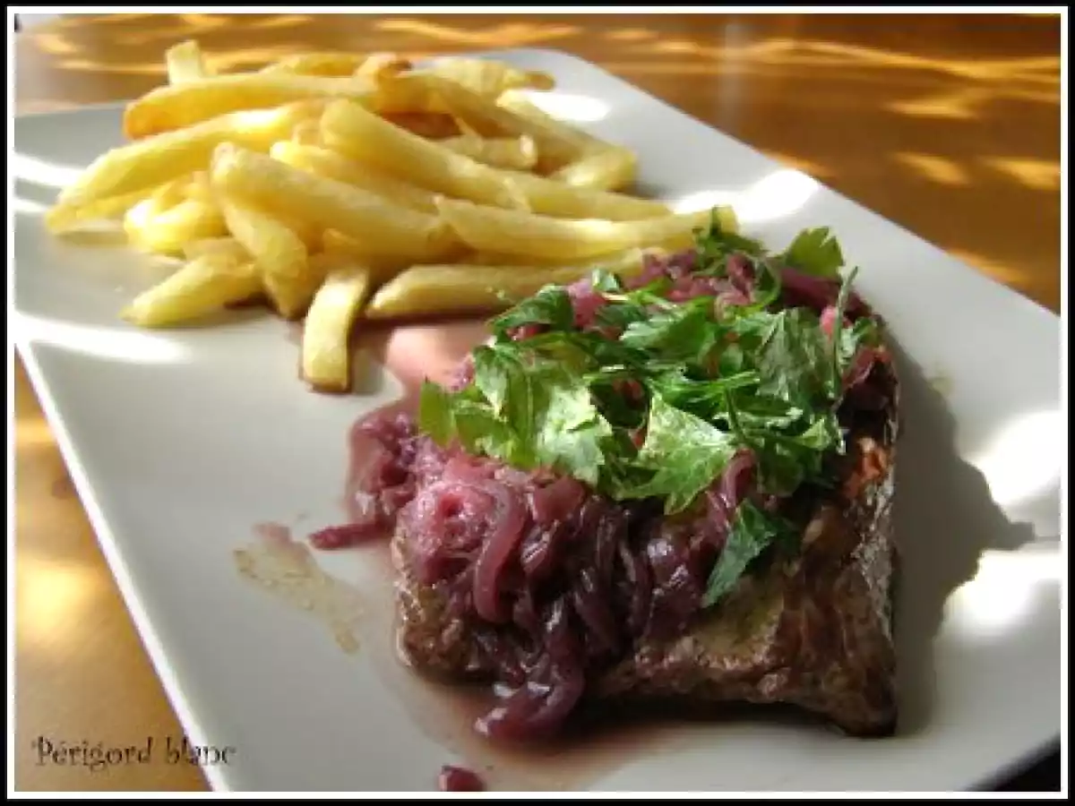 **** bavette a l'échalote **** votez maintenant PrécédentSuivant Platfacile25 min Envoyer cette recette à un ami Imprimer cette page Poser une question à l'auteur Publier votre photo de cette recette Ingrédients 4 4 bavettes d'aloyau de chez iboucherie 8 échalotes 35 cl de beaujolais du beurre sel et poivre