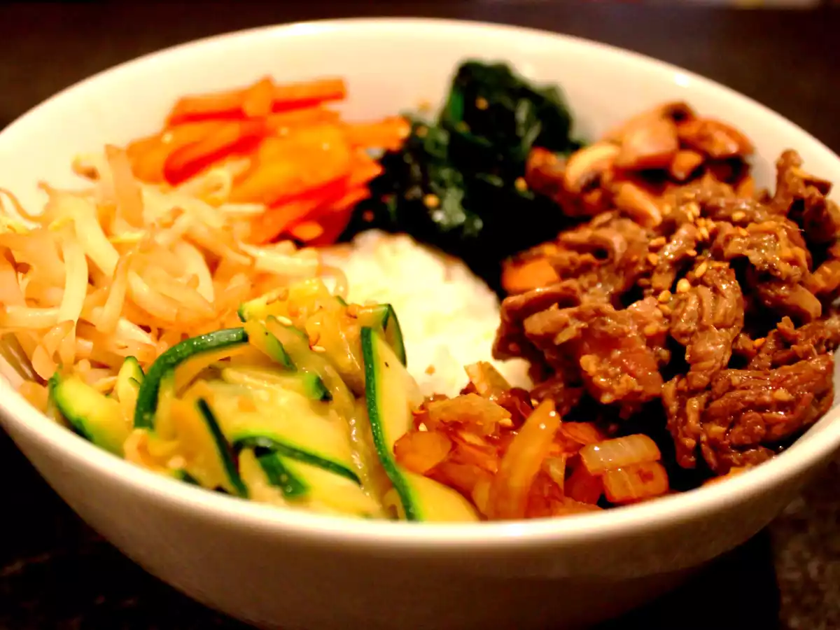 Je vous propose ce soir une recette d'un plat traditionnel coréen : le BiBimBap. Ce plat très populaire au pays du matin calme possède une grande quantité de variantes en termes de recettes. La base est d'avoir du riz accompagné de plusieurs légumes sautés et de viandes. Ce plat est toujours accompagné d'une sauce de piment fermenté servi à part afin que chacun puisse épicer son plat en fonction de ses goûts.