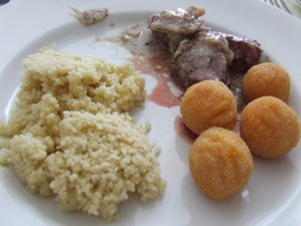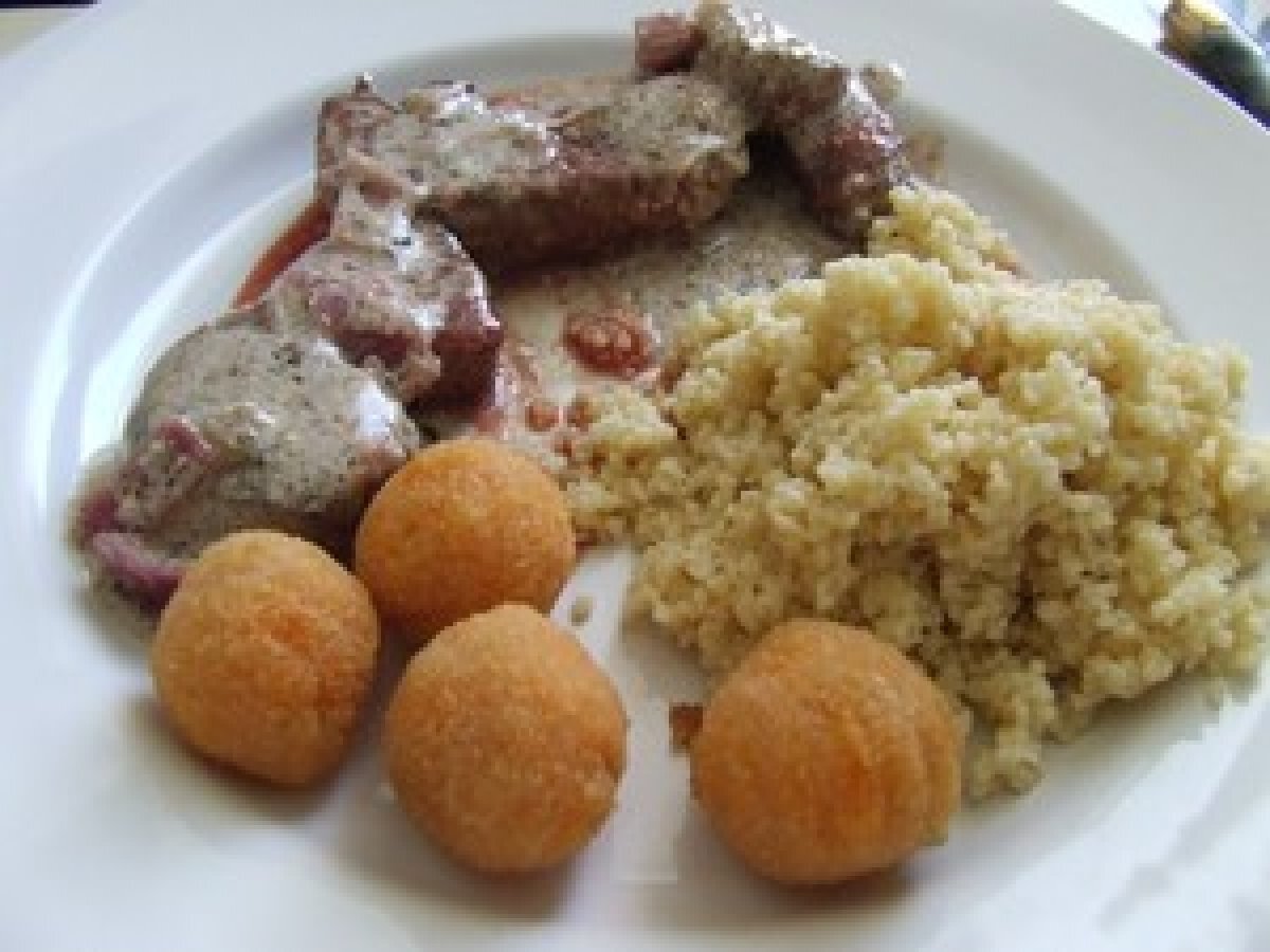 - Dresser la biche sur chaque assiette avec la sauce au boursin et accompagner de semoule de blé et de légumes noisettes aux carottes ou tout autre accompagnement de votre choix.