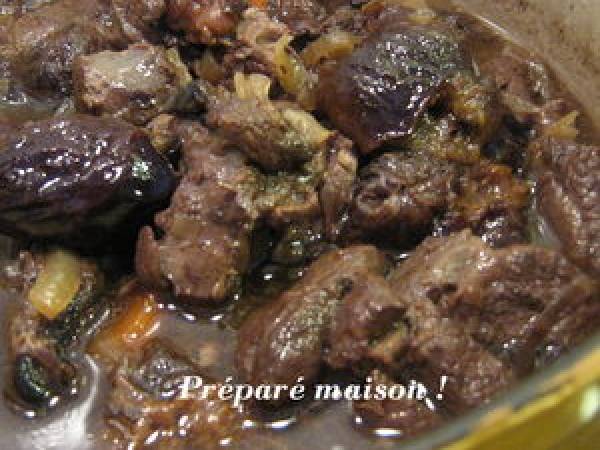 Biche en daube aux pruneaux Platfacile4 h 15 m943 Kcal Envoyer cette recette à un ami Imprimer cette page Poser une question à l'auteur Publier votre photo de cette recette Ingrédients 4 1 kg de biche en morceaux 1 tranche de lard frais 250 g de pruneaux dénoyautés 1 carotte 2 oignons 1 bouteille de vin rouge 1 petit verre de cognac noix de muscade quatre-épices sel poivre huile