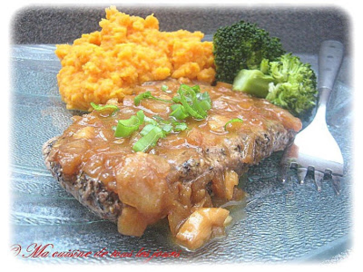 Biftecks au poivre, purée de patates douces et sauce au gingembre