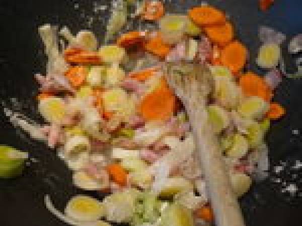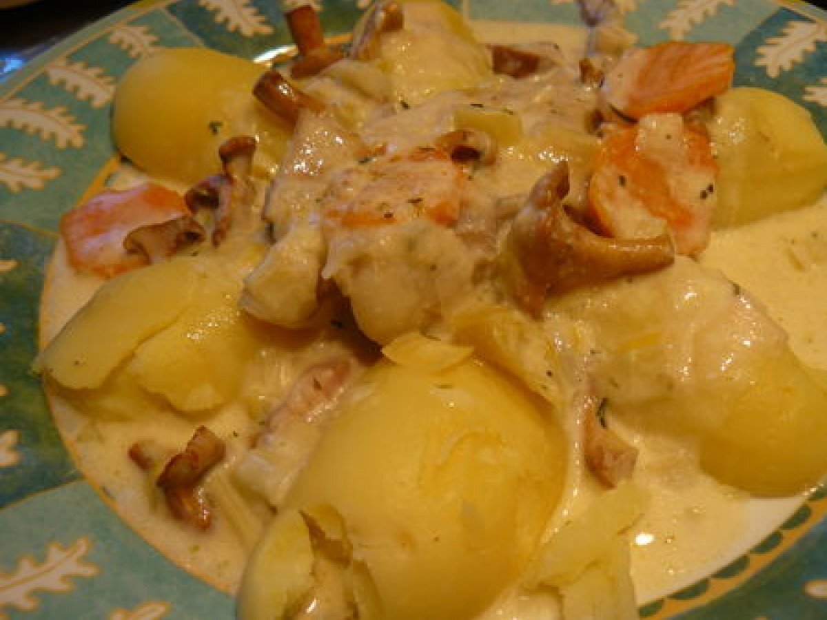 Blanquette de lotte aux girolles PrécédentSuivant Platfacile1 heure Envoyer cette recette à un ami Imprimer cette page Poser une question à l'auteur Publier votre photo de cette recette Un plat qui vous tienne au chaud, très bon pour la toux! Ingrédients 4 4 queues de lotte (400 g environ voir un peu plus ) 12 petites pommes de terre 2 blancs de poireaux moyens 1 carotte 1 échalote 135 g de girolles fraîches 1 litre d'eau 1/2 cube de bouillon (volaille ou légumes) 20 cl de crème fraîche liquide 2 cuillères à soupe de maïzena 1 pincée de sariette (ou persil) 100 g de lardons nature (- 25% de sel) 1 jaune d'oeuf
