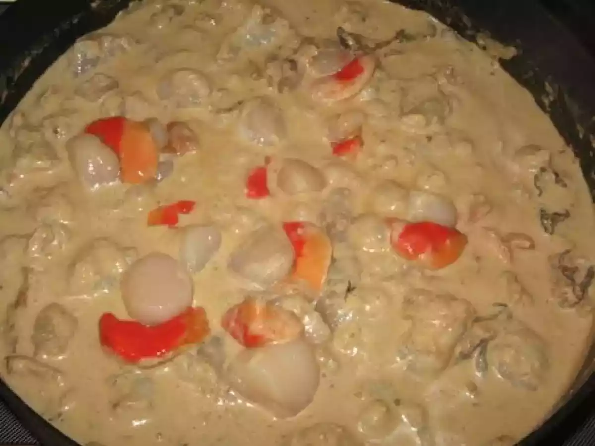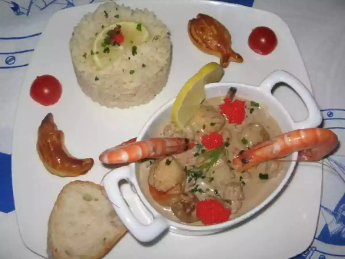 Blanquette de lotte et saint jacques PrécédentSuivant Platfacile48 min438 Kcal Envoyer cette recette à un ami Imprimer cette page Poser une question à l'auteur Publier votre photo de cette recette Une recette un peu festive et rapide à faire. Ingrédients 6 800 g de filets de lotte 18 noix de saint jacques 100 g de jambon cru 40 g de champignons séchés 2 échalotes 2 gousses d'ail 50 g d'amande en poudre 2 cuillères à soupe de fumet de poisson déshydraté 20 cl de vin blanc (type chablis ou autre) 20 cl de crème liquide 20 g de beurre sel , poivre Coût estimé: 44.92Euros€ (7.49€/part)